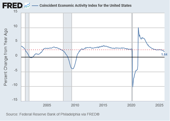 This matters because the coincident index isn't a sentiment survey or a financial market signal that can be distorted by speculation. It's rooted in hard labor market and income data, which makes its current weakness particularly meaningful.